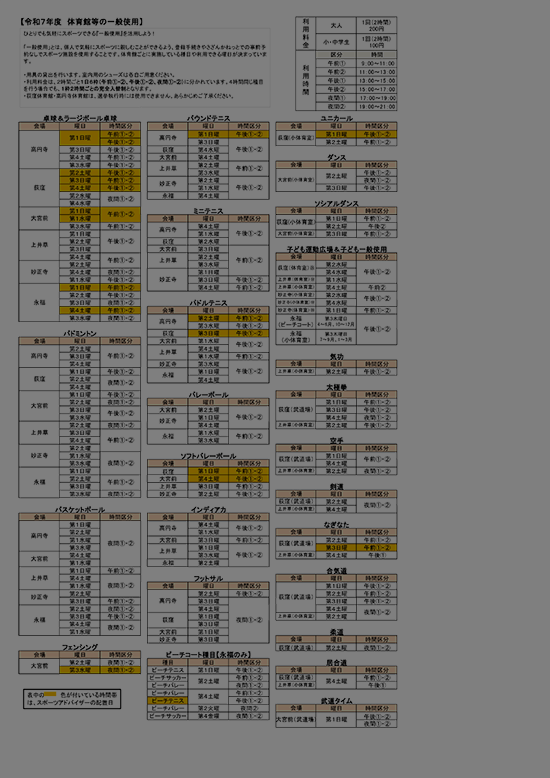 一般使用は、ニュースポーツや競技スポーツなどさまざまな種目を、決められた日時に行うことができます。