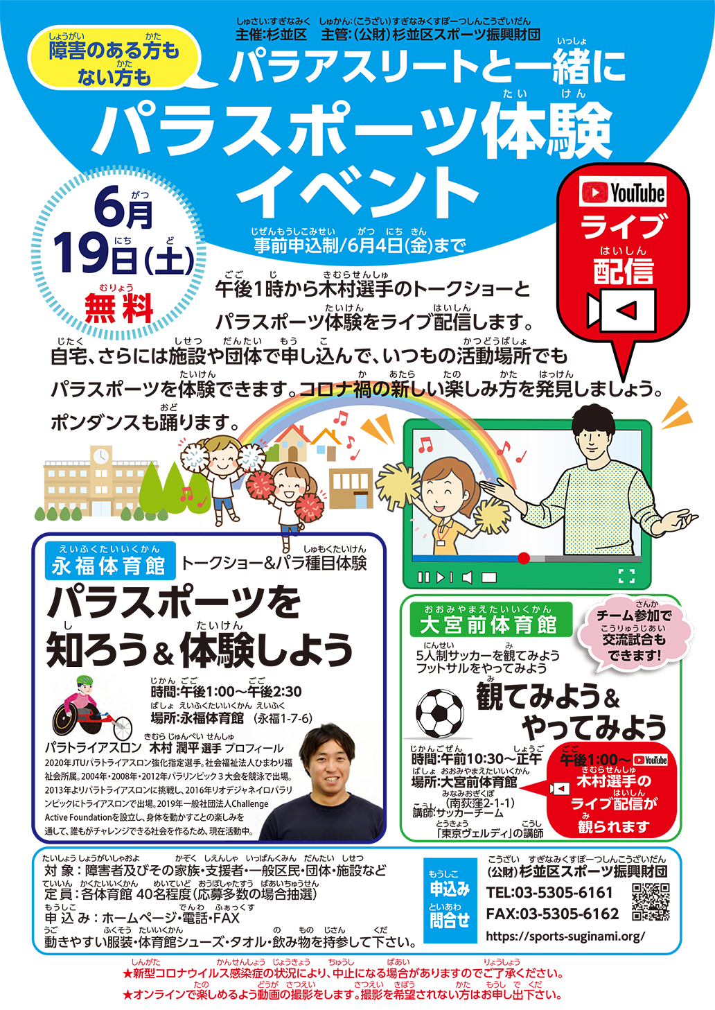 杉並区では、保健師、理学療法士、作業療法士の監修により、誰もが楽しめ、体力維持を図れるポンダンス動画を製作しました。外出の機会が減っている方も、自宅や施設などいつもの活動場所で一緒に踊ってみてください。 0:04からはダンスのお手本、2:40からは実際に踊っている様子です。 (問合せ先) 杉並区保健福祉部障害者施策課管理係 電話03-3312-2111 |
